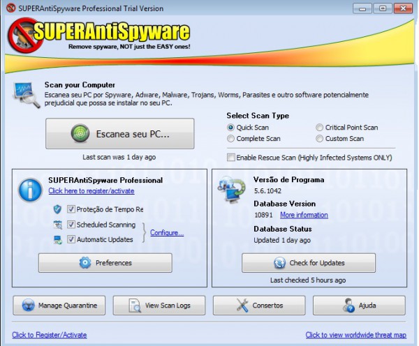 O SUPERAntiSpyware consegue eliminar uma grande quantidade de programas espiões.
